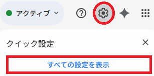 1.パソコンのGmail右上の「歯車アイコン(設定)」をクリックし、「すべての設定を表示」を押します。